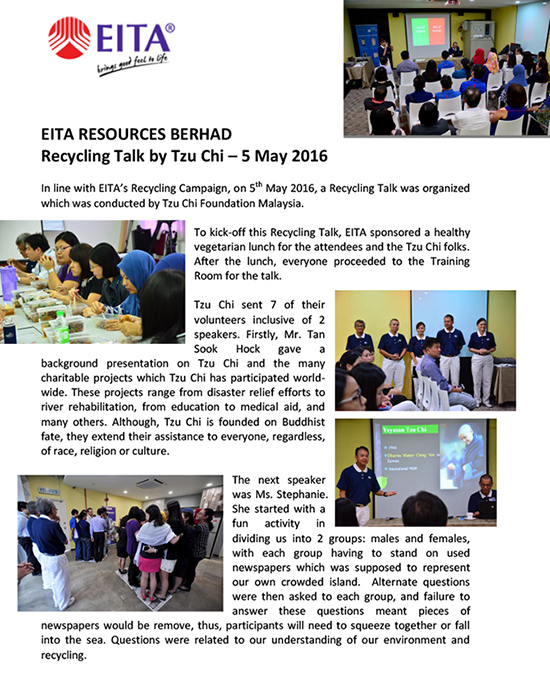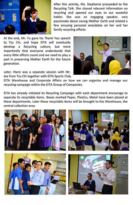 In line with EITA’s Recycling Campaign, on 5th May 2016,